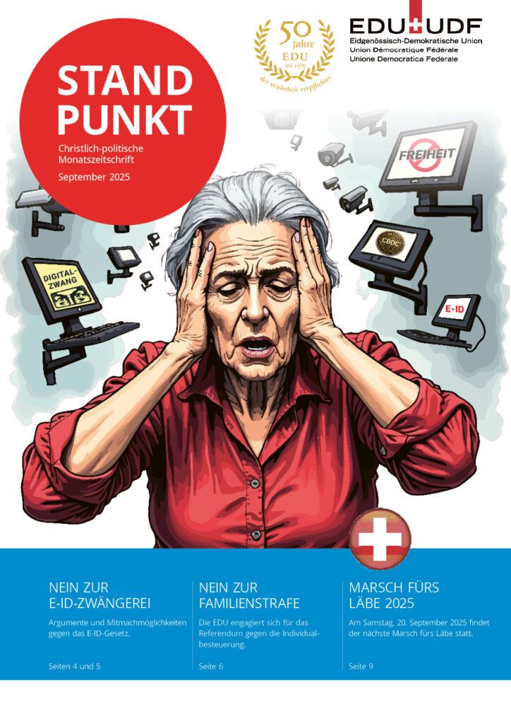 Klicken Sie auf das Titelbild-> so gelangen Sie auf die aktuelle Standpunkt- Seite der EDU Schweiz.